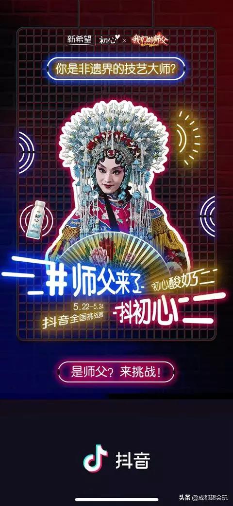 在成為大張偉、劉宇寧、董思成、于曉光、凱麗、倪萍、趙忠祥等明星指定飯桌飲品和下午茶之后,初心酸奶又轉(zhuǎn)戰(zhàn)抖音,發(fā)起一次全國(guó)尋找?guī)煾傅奶魬?zhàn)賽#師父來(lái)了抖初心,將節(jié)目IP的營(yíng)銷價(jià)值最大化,再次賺足了曝光。