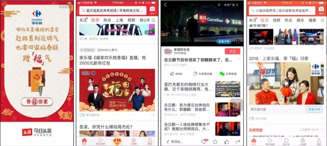 另一方面,為保證拔草的成功,一系列優質的種草內容是必備鋪墊。家樂福在TVC上線前,以街采視頻渲染歸家情緒氛圍,配合《年貨專列陪你回家》H5路易、ROCK陪你掃貨頭條直播深度種草,不斷刺激消費者產生去家樂福買年貨的沖動,縮短消費者的決策過程,最終實現高效轉化。